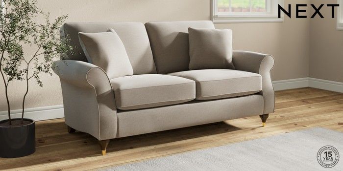 7.2.10 Ashford 2 Seater Sofa Ripple Chenille Light Natural Modern Turned Metal Cap - Mid | Made Click here to use our website with more accessibility support, for example screen readers