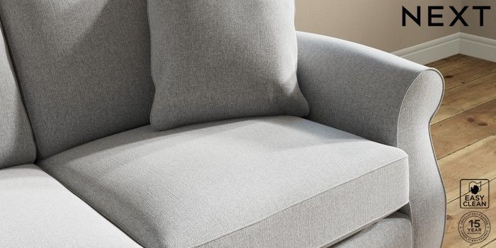7.2.10 Ashford 2 Seater Sofa Tweedy Blend Easy Clean Light Silver Grey Modern Turned Metal Cap - Mid | Made Click here to use our website with more accessibility support, for example screen readers