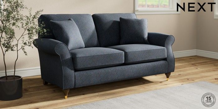 7.2.10 Ashford 2 Seater Sofa Tweedy Chenille Navy Blue Modern Turned Metal Cap - Mid | Made Click here to use our website with more accessibility support, for example screen readers