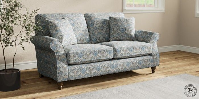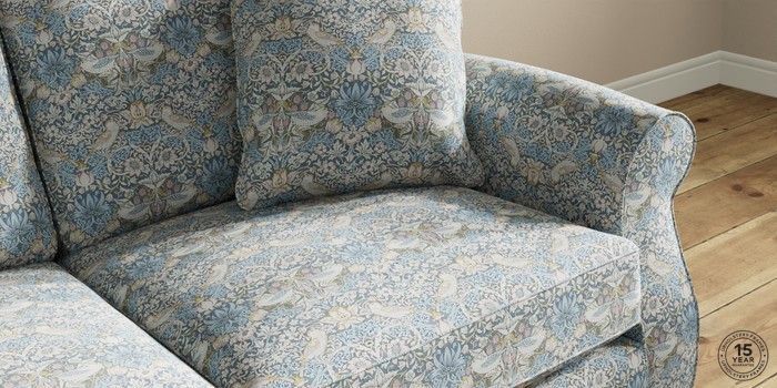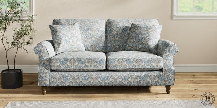 7.2.10 Ashford 2 Seater Sofa WM Strawberry Thief by Clarke and Clarke Slate Grey Blush Low Turned - Mid | Made Click here to use our website with more accessibility support, for example screen readers