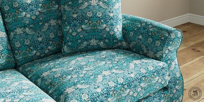 7.2.10 Ashford 2 Seater Sofa WM Strawberry Thief by Clarke and Clarke Teal Castor - Mid | Made Click here to use our website with more accessibility support, for example screen readers