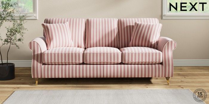 7.2.10 Ashford 3 Cushion 3 Seater Sofa Bold Chenille Stripe Dark Pink Castor - Light | Made Click here to use our website with more accessibility support, for example screen readers