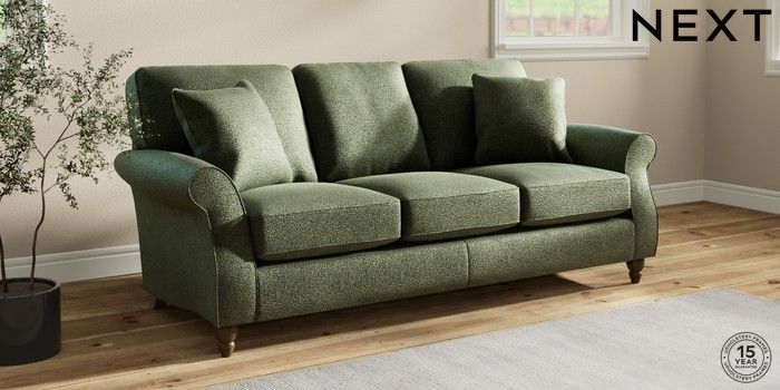7.2.10 Ashford 3 Cushion 3 Seater Sofa Boucle Chenille Dark Moss Green Low Turned - Mid | Made Click here to use our website with more accessibility support, for example screen readers