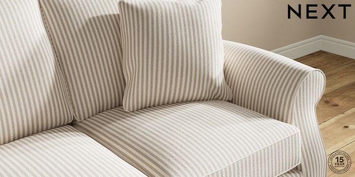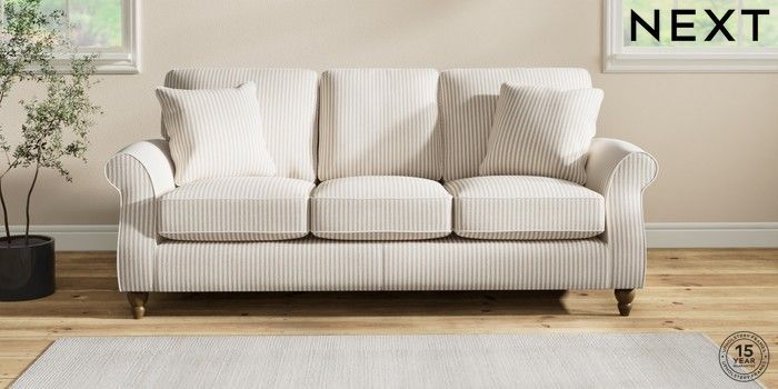 7.2.10 Ashford 3 Cushion 3 Seater Sofa Chenille Stripe Natural Low Turned - Mid | Made Click here to use our website with more accessibility support, for example screen readers