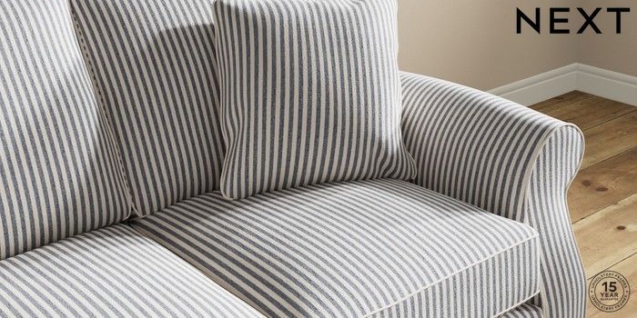 7.2.10 Ashford 3 Cushion 3 Seater Sofa Chenille Stripe Slate Blue Castor - Dark | Made Click here to use our website with more accessibility support, for example screen readers