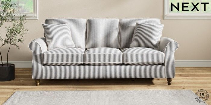 7.2.10 Ashford 3 Cushion 3 Seater Sofa Chenille Stripe Slate Blue Low Turned - Mid | Made Click here to use our website with more accessibility support, for example screen readers