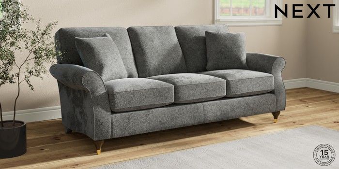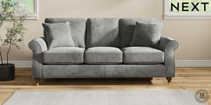 7.2.10 Ashford 3 Cushion 3 Seater Sofa Chunky Chenille Dark Grey Modern Turned Metal Cap - Mid | Made Click here to use our website with more accessibility support, for example screen readers