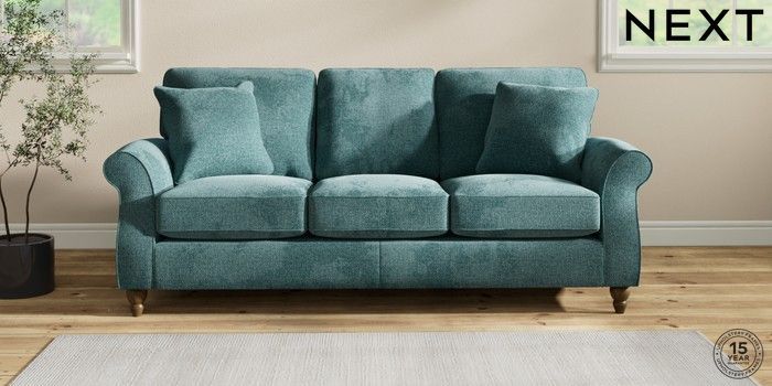 7.2.10 Ashford 3 Cushion 3 Seater Sofa Chunky Chenille Mid Teal Green Low Turned - Mid | Made Click here to use our website with more accessibility support, for example screen readers