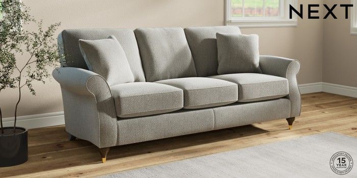 7.2.10 Ashford 3 Cushion 3 Seater Sofa Chunky Texture Dove Modern Turned Metal Cap - Mid | Made Click here to use our website with more accessibility support, for example screen readers