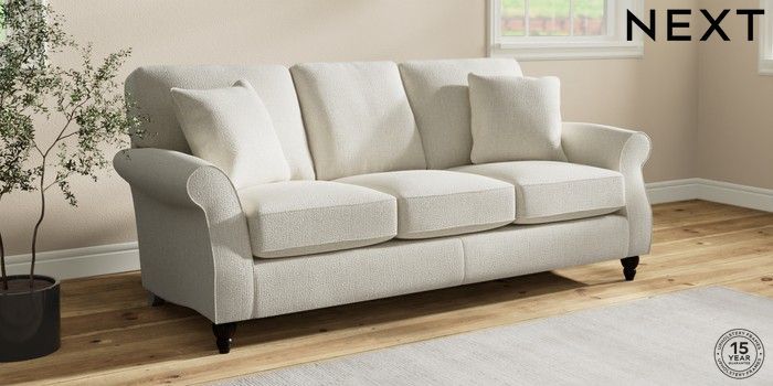 7.2.10 Ashford 3 Cushion 3 Seater Sofa Chunky Texture Oyster Low Turned - Dark | Made Click here to use our website with more accessibility support, for example screen readers