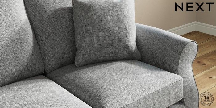 7.2.10 Ashford 3 Cushion 3 Seater Sofa Chunky Weave Mid Grey Modern Turned Metal Cap - Mid | Made Click here to use our website with more accessibility support, for example screen readers