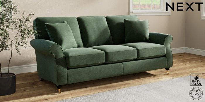 7.2.10 Ashford 3 Cushion 3 Seater Sofa Fine Chenille Easy Clean Mid Khaki Green Castor - Dark | Made Click here to use our website with more accessibility support, for example screen readers