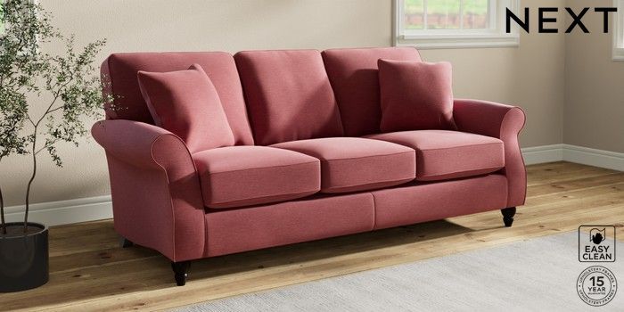 7.2.10 Ashford 3 Cushion 3 Seater Sofa Fine Chenille Easy Clean Mid Pink Low Turned - Dark | Made Click here to use our website with more accessibility support, for example screen readers