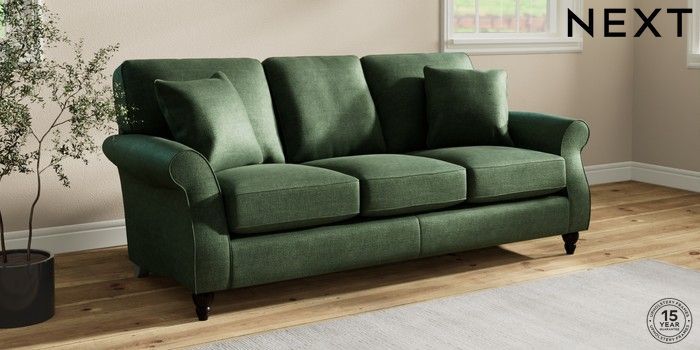 7.2.10 Ashford 3 Cushion 3 Seater Sofa Luxe Chenille Dark Green Low Turned - Dark | Made Click here to use our website with more accessibility support, for example screen readers