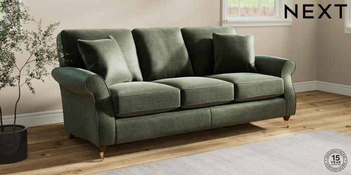7.2.10 Ashford 3 Cushion 3 Seater Sofa Luxe Chenille Mid Green Castor - Mid | Made Click here to use our website with more accessibility support, for example screen readers