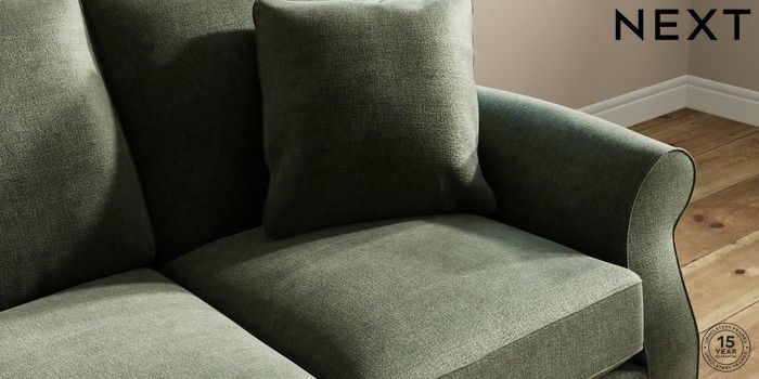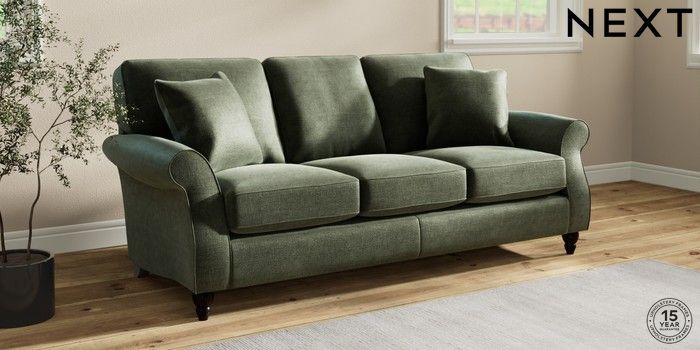 7.2.10 Ashford 3 Cushion 3 Seater Sofa Luxe Chenille Mid Green Low Turned - Dark | Made Click here to use our website with more accessibility support, for example screen readers