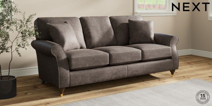 7.2.10 Ashford 3 Cushion 3 Seater Sofa Plush Chenille Mink Brown Modern Turned Metal Cap - Mid | Made Click here to use our website with more accessibility support, for example screen readers