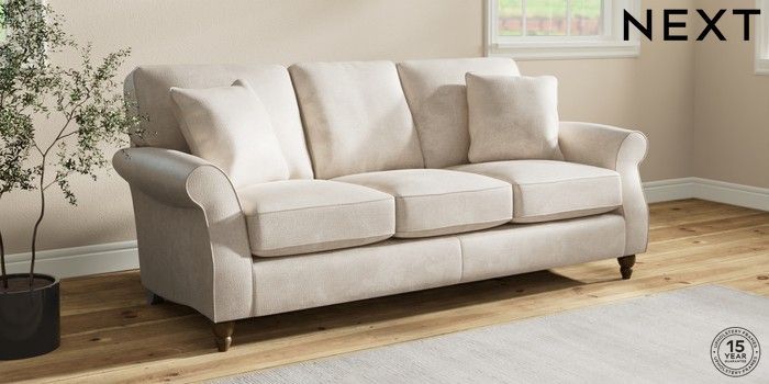 7.2.10 Ashford 3 Cushion 3 Seater Sofa Plush Chenille Oyster Low Turned - Mid | Made Click here to use our website with more accessibility support, for example screen readers
