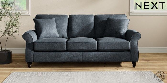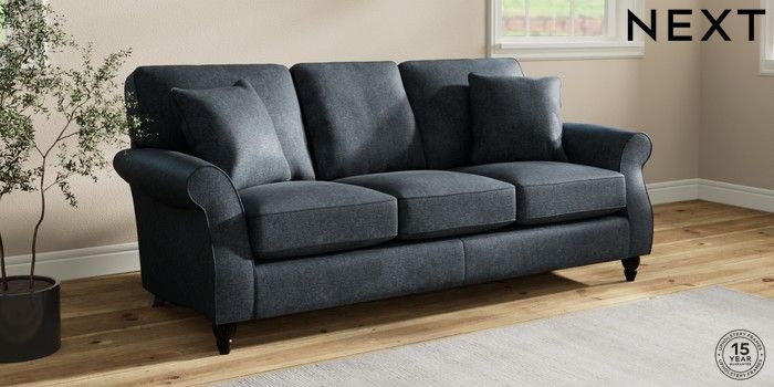 7.2.10 Ashford 3 Cushion 3 Seater Sofa Plush Chenille Slate Blue Low Turned - Dark | Made Click here to use our website with more accessibility support, for example screen readers
