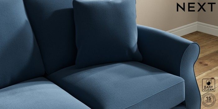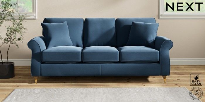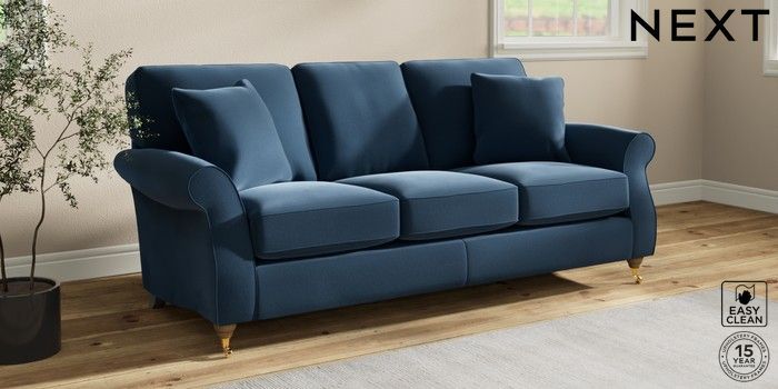 7.2.10 Ashford 3 Cushion 3 Seater Sofa Plush Velvet Easy Clean Airforce Blue Castor - Light | Made Click here to use our website with more accessibility support, for example screen readers