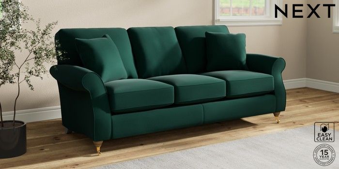 7.2.10 Ashford 3 Cushion 3 Seater Sofa Plush Velvet Easy Clean Bottle Green Castor - Light | Made Click here to use our website with more accessibility support, for example screen readers
