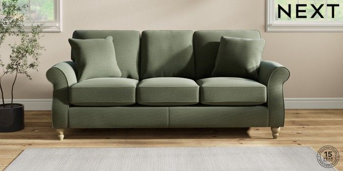 7.2.10 Ashford 3 Cushion 3 Seater Sofa Relaxed Linen Look Dark Green Low Turned - Light | Made Click here to use our website with more accessibility support, for example screen readers
