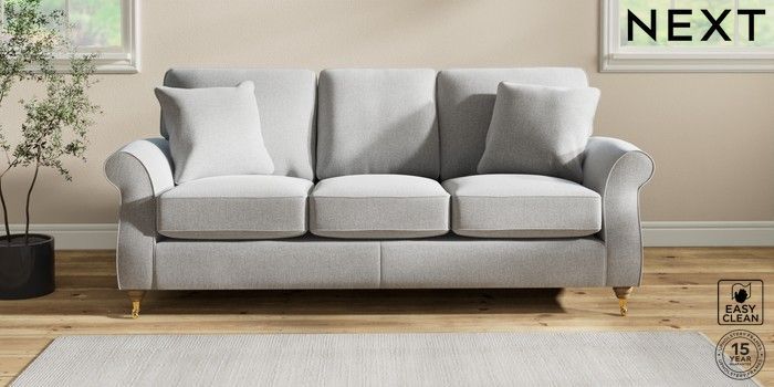 7.2.10 Ashford 3 Cushion 3 Seater Sofa Tweedy Blend Easy Clean Light Silver Grey Castor - Light | Made Click here to use our website with more accessibility support, for example screen readers