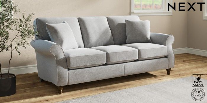 7.2.10 Ashford 3 Cushion 3 Seater Sofa Tweedy Blend Easy Clean Light Silver Grey Low Turned - Mid | Made Click here to use our website with more accessibility support, for example screen readers