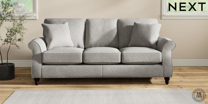 7.2.10 Ashford 3 Cushion 3 Seater Sofa Tweedy Chenille Mid Grey Low Turned - Dark | Made Click here to use our website with more accessibility support, for example screen readers