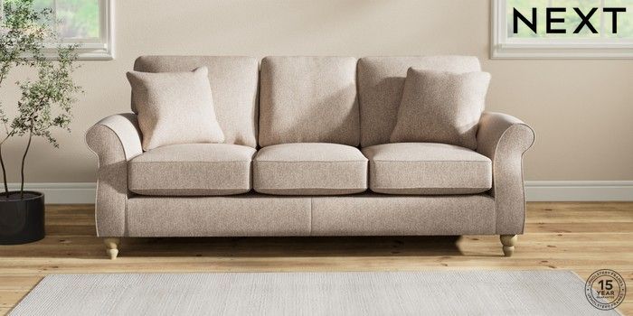 7.2.10 Ashford 3 Cushion 3 Seater Sofa Tweedy Chenille Mid Natural Low Turned - Light | Made Click here to use our website with more accessibility support, for example screen readers