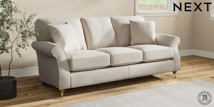 The Ashford sofa range embodies classic country style with its generous proportions and elegant scroll arms. It features "Firmer Sit" seat cushions, constructed with a high-density foam core and soft foam toppers. This design provides ultimate support, durability, and shape retention, while also offering a more tailored appearance. These cushions are low-maintenance and will naturally return to their shape when not in use. For extra comfort, we've included scatter cushions filled with a luxurious fibre mix. The seat cushions are also reversible, so we recommend rotating and plumping them regularly to keep them looking their best. Personalise your Ashford sofa by choosing from a vast array of fabric colors and a selection of feet options. This range has a sofa bed. Sofa beds are a practical and comfortable addition to any home, big or small. Our sofa beds are pull-out beds containing a separate 6cm occasional foam mattress. This pull-out mechanism is concealed underneath the main cushions. We have sofa beds across multiple ranges, but they all are 120cm in width and 180cm in length, so we suggest a double duvet and a double flat sheet to dress your sofa bed.