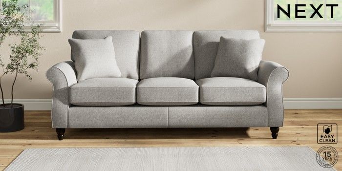 7.2.10 Ashford 3 Cushion 3 Seater Sofa Woven Chenille Easy Clean Light Grey Low Turned - Dark | Made Click here to use our website with more accessibility support, for example screen readers