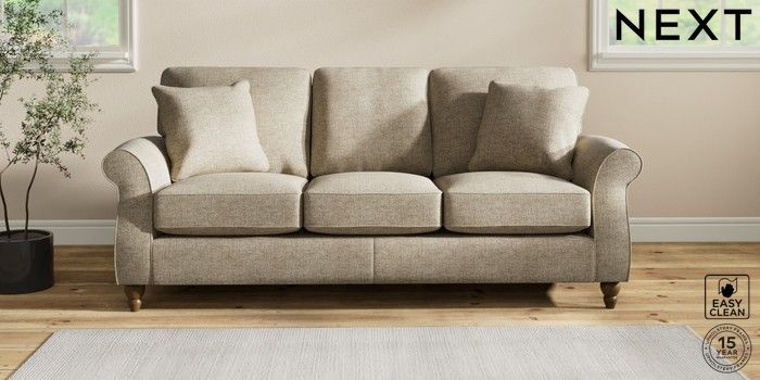 7.2.10 Ashford 3 Cushion 3 Seater Sofa Woven Chenille Easy Clean Mid Natural Low Turned - Mid | Made Click here to use our website with more accessibility support, for example screen readers