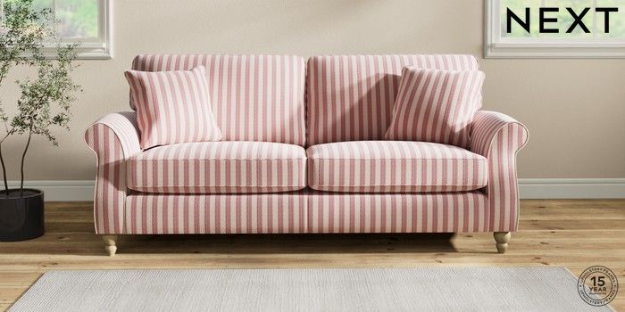 7.2.10 Ashford 3 Seater Sofa Bold Chenille Stripe Dark Pink Low Turned - Light | Made Click here to use our website with more accessibility support, for example screen readers