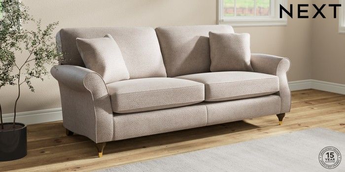 7.2.10 Ashford 3 Seater Sofa Boucle Chenille Light Natural Modern Turned Metal Cap - Mid | Made Click here to use our website with more accessibility support, for example screen readers