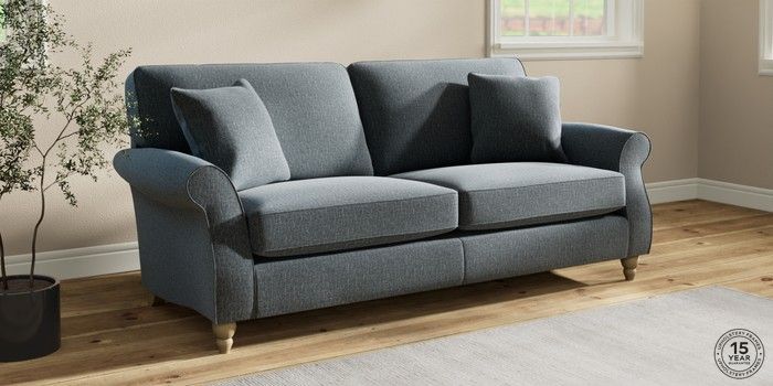 The Ashford sofa range embodies classic country style with its generous proportions and elegant scroll arms. It features "Firmer Sit" seat cushions, constructed with a high-density foam core and soft foam toppers. This design provides ultimate support, durability, and shape retention, while also offering a more tailored appearance. These cushions are low-maintenance and will naturally return to their shape when not in use. For extra comfort, we've included scatter cushions filled with a luxurious fibre mix. The seat cushions are also reversible, so we recommend rotating and plumping them regularly to keep them looking their best. Personalise your Ashford sofa by choosing from a vast array of fabric colors and a selection of feet options. This range has a sofa bed. Sofa beds are a practical and comfortable addition to any home, big or small. Our sofa beds are pull-out beds containing a separate 6cm occasional foam mattress. This pull-out mechanism is concealed underneath the main cushions. We have sofa beds across multiple ranges, but they all are 120cm in width and 180cm in length, so we suggest a double duvet and a double flat sheet to dress your sofa bed.