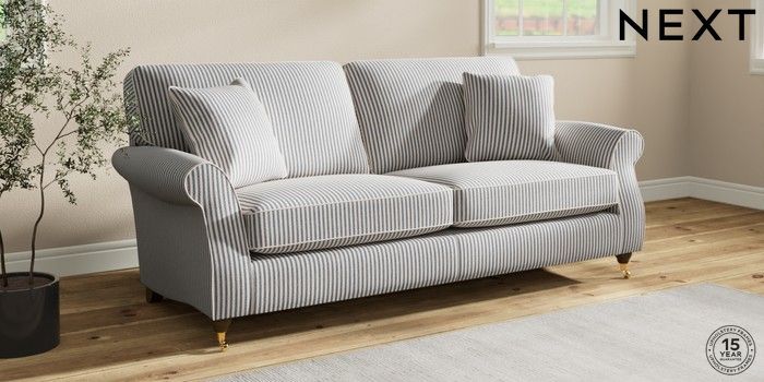7.2.10 Ashford 3 Seater Sofa Chenille Stripe Slate Blue Castor - Mid | Made Click here to use our website with more accessibility support, for example screen readers