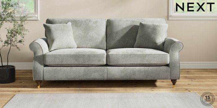 7.2.10 Ashford 3 Seater Sofa Chunky Chenille Light Grey Modern Turned Metal Cap - Mid | Made Click here to use our website with more accessibility support, for example screen readers