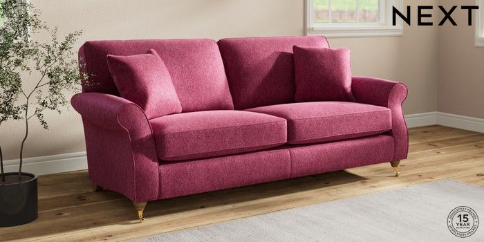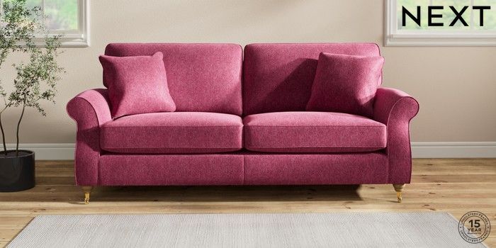 7.2.10 Ashford 3 Seater Sofa Cotswold Chenille Dark Raspberry Pink Castor - Light | Made Click here to use our website with more accessibility support, for example screen readers