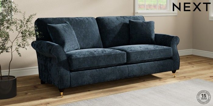 7.2.10 Ashford 3 Seater Sofa Distressed Velour Midnight Blue Castor - Dark | Made Click here to use our website with more accessibility support, for example screen readers