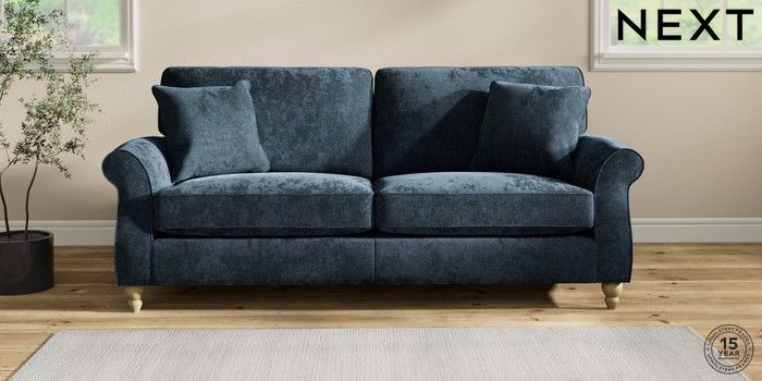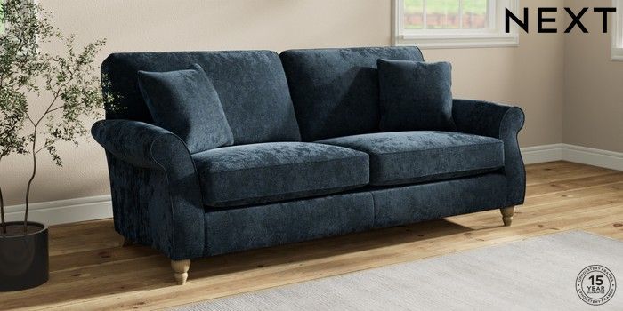 7.2.10 Ashford 3 Seater Sofa Distressed Velour Midnight Blue Low Turned - Light | Made Click here to use our website with more accessibility support, for example screen readers