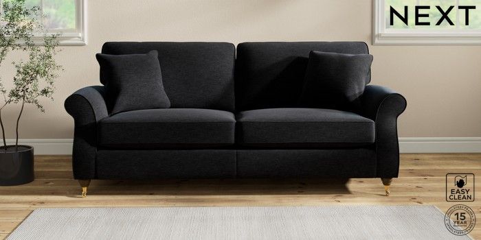7.2.10 Ashford 3 Seater Sofa Fine Chenille Easy Clean Black Castor - Mid | Made Click here to use our website with more accessibility support, for example screen readers