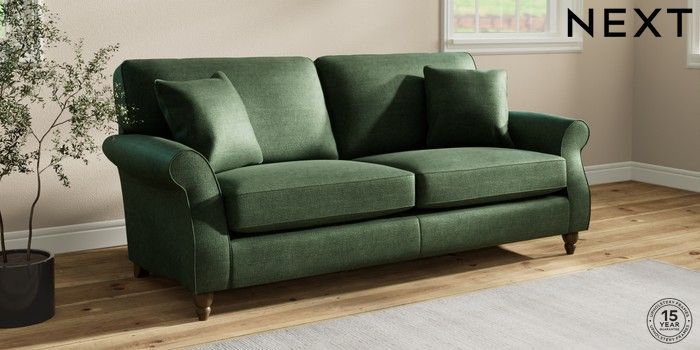 7.2.10 Ashford 3 Seater Sofa Luxe Chenille Dark Green Low Turned - Mid | Made Click here to use our website with more accessibility support, for example screen readers