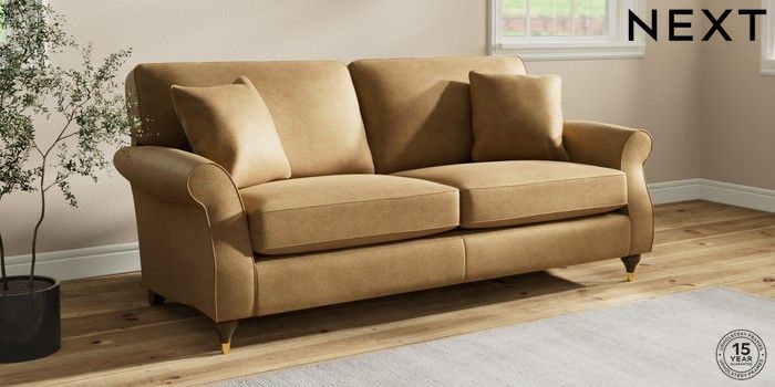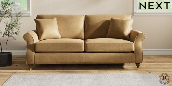 7.2.10 Ashford 3 Seater Sofa Luxe Chenille Honey Yellow Modern Turned Metal Cap - Mid | Made Click here to use our website with more accessibility support, for example screen readers