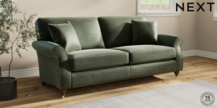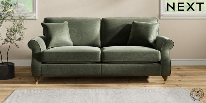 7.2.10 Ashford 3 Seater Sofa Luxe Chenille Mid Green Modern Turned Metal Cap - Mid | Made Click here to use our website with more accessibility support, for example screen readers