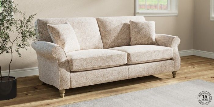 The Ashford sofa range embodies classic country style with its generous proportions and elegant scroll arms. It features "Firmer Sit" seat cushions, constructed with a high-density foam core and soft foam toppers. This design provides ultimate support, durability, and shape retention, while also offering a more tailored appearance. These cushions are low-maintenance and will naturally return to their shape when not in use. For extra comfort, we've included scatter cushions filled with a luxurious fibre mix. The seat cushions are also reversible, so we recommend rotating and plumping them regularly to keep them looking their best. Personalise your Ashford sofa by choosing from a vast array of fabric colors and a selection of feet options. This range has a sofa bed. Sofa beds are a practical and comfortable addition to any home, big or small. Our sofa beds are pull-out beds containing a separate 6cm occasional foam mattress. This pull-out mechanism is concealed underneath the main cushions. We have sofa beds across multiple ranges, but they all are 120cm in width and 180cm in length, so we suggest a double duvet and a double flat sheet to dress your sofa bed.