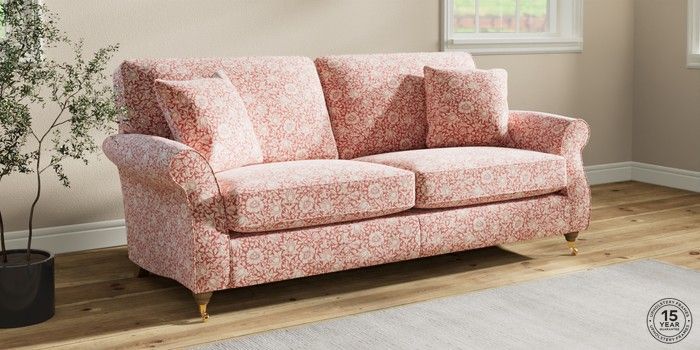 The Ashford sofa range embodies classic country style with its generous proportions and elegant scroll arms. It features "Firmer Sit" seat cushions, constructed with a high-density foam core and soft foam toppers. This design provides ultimate support, durability, and shape retention, while also offering a more tailored appearance. These cushions are low-maintenance and will naturally return to their shape when not in use. For extra comfort, we've included scatter cushions filled with a luxurious fibre mix. The seat cushions are also reversible, so we recommend rotating and plumping them regularly to keep them looking their best. Personalise your Ashford sofa by choosing from a vast array of fabric colors and a selection of feet options. This range has a sofa bed. Sofa beds are a practical and comfortable addition to any home, big or small. Our sofa beds are pull-out beds containing a separate 6cm occasional foam mattress. This pull-out mechanism is concealed underneath the main cushions. We have sofa beds across multiple ranges, but they all are 120cm in width and 180cm in length, so we suggest a double duvet and a double flat sheet to dress your sofa bed.