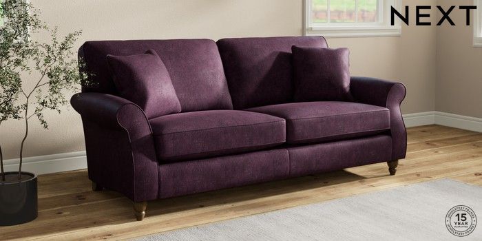7.2.10 Ashford 3 Seater Sofa Plush Chenille Dark Plum Purple Low Turned - Mid | Made Click here to use our website with more accessibility support, for example screen readers