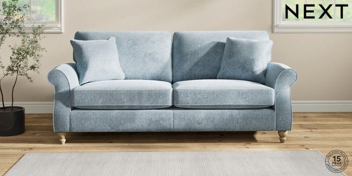 7.2.10 Ashford 3 Seater Sofa Plush Chenille Light Blue Low Turned - Light | Made Click here to use our website with more accessibility support, for example screen readers