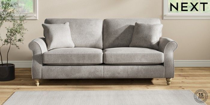 7.2.10 Ashford 3 Seater Sofa Plush Chenille Light Grey Low Turned - Light | Made Click here to use our website with more accessibility support, for example screen readers